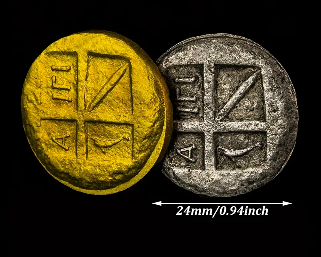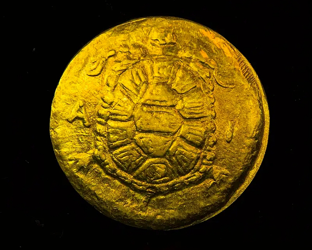 The Aeginetic stater was the first silver coin to be widely used for trade throughout the Mediterranean and the East.