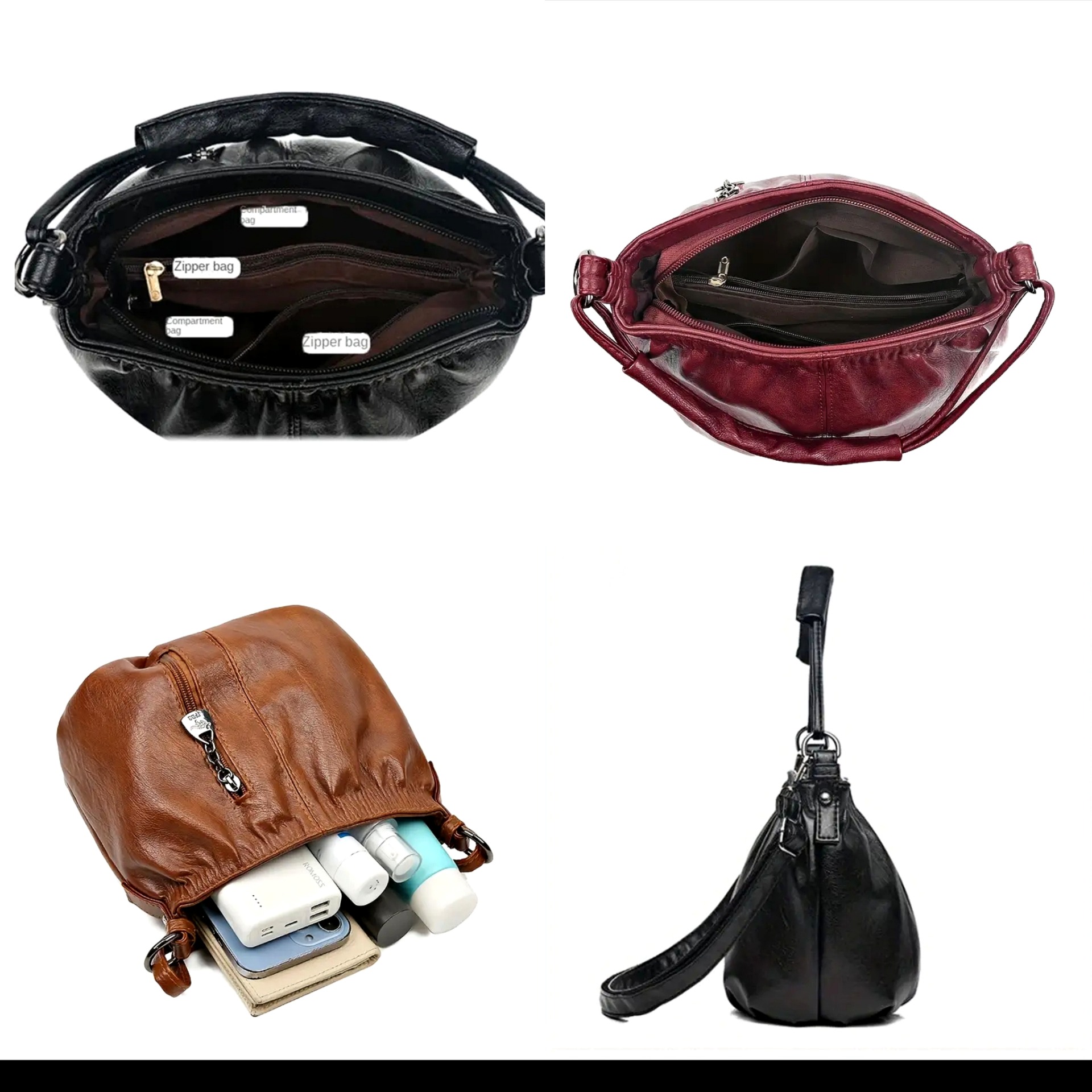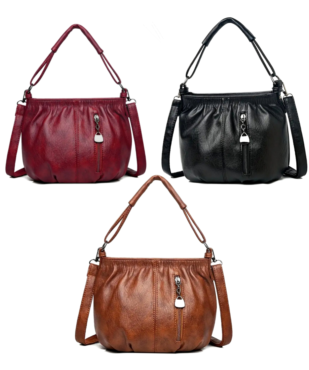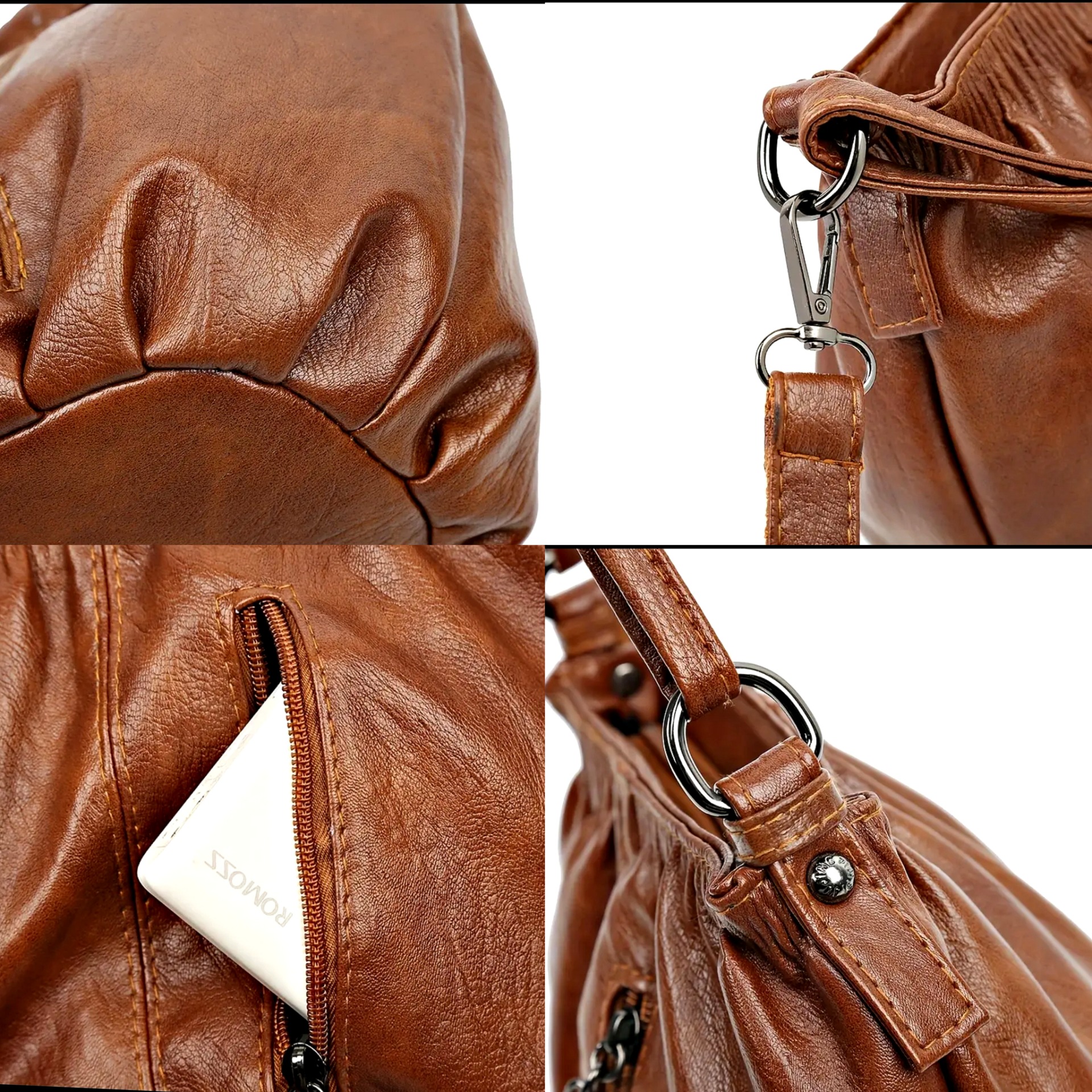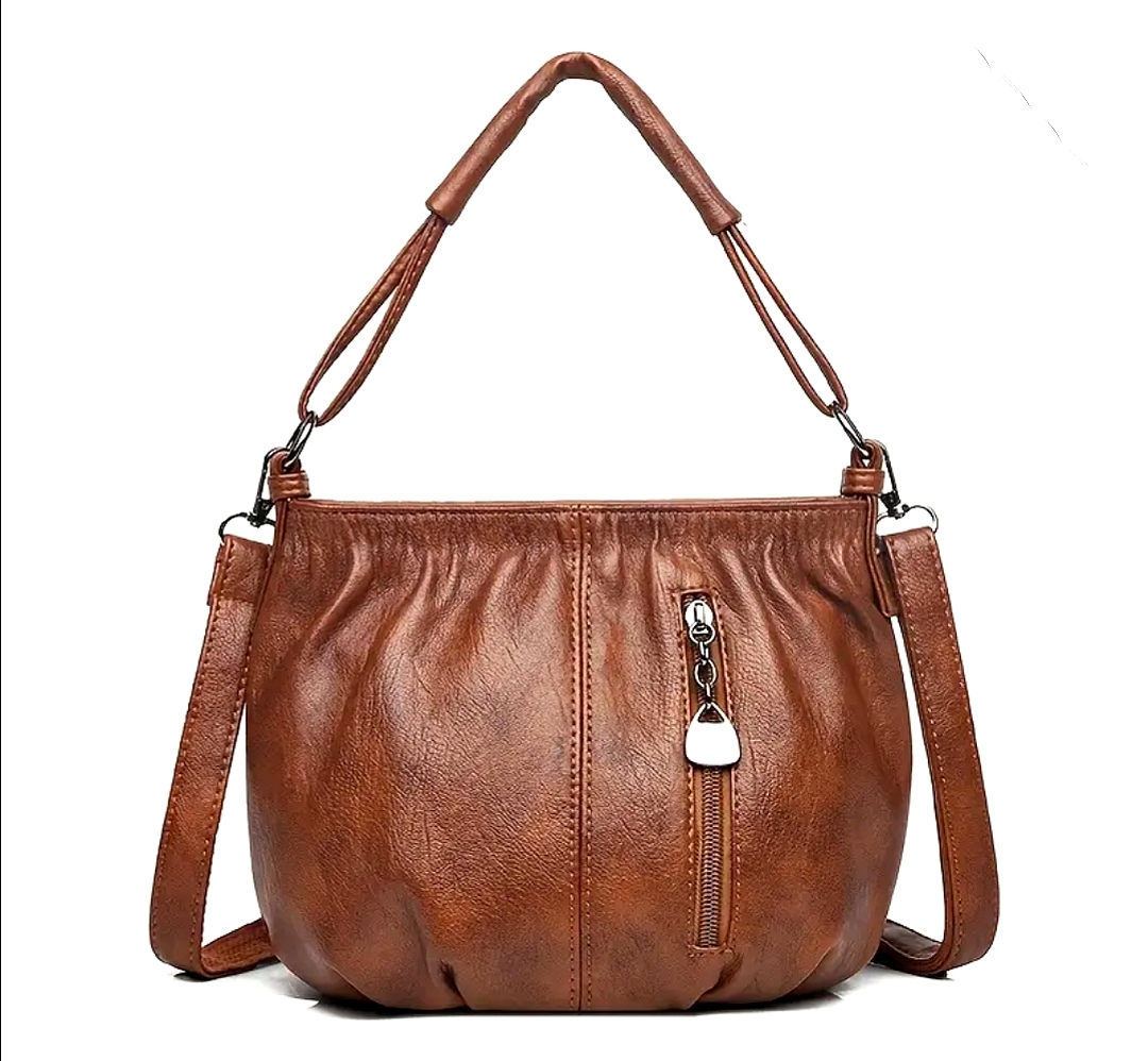 Chic crossbody - Leather handbag with multiple compartments, adjustable strap, zipper closure -casual - soft - romantic luxury shoulder/handbag