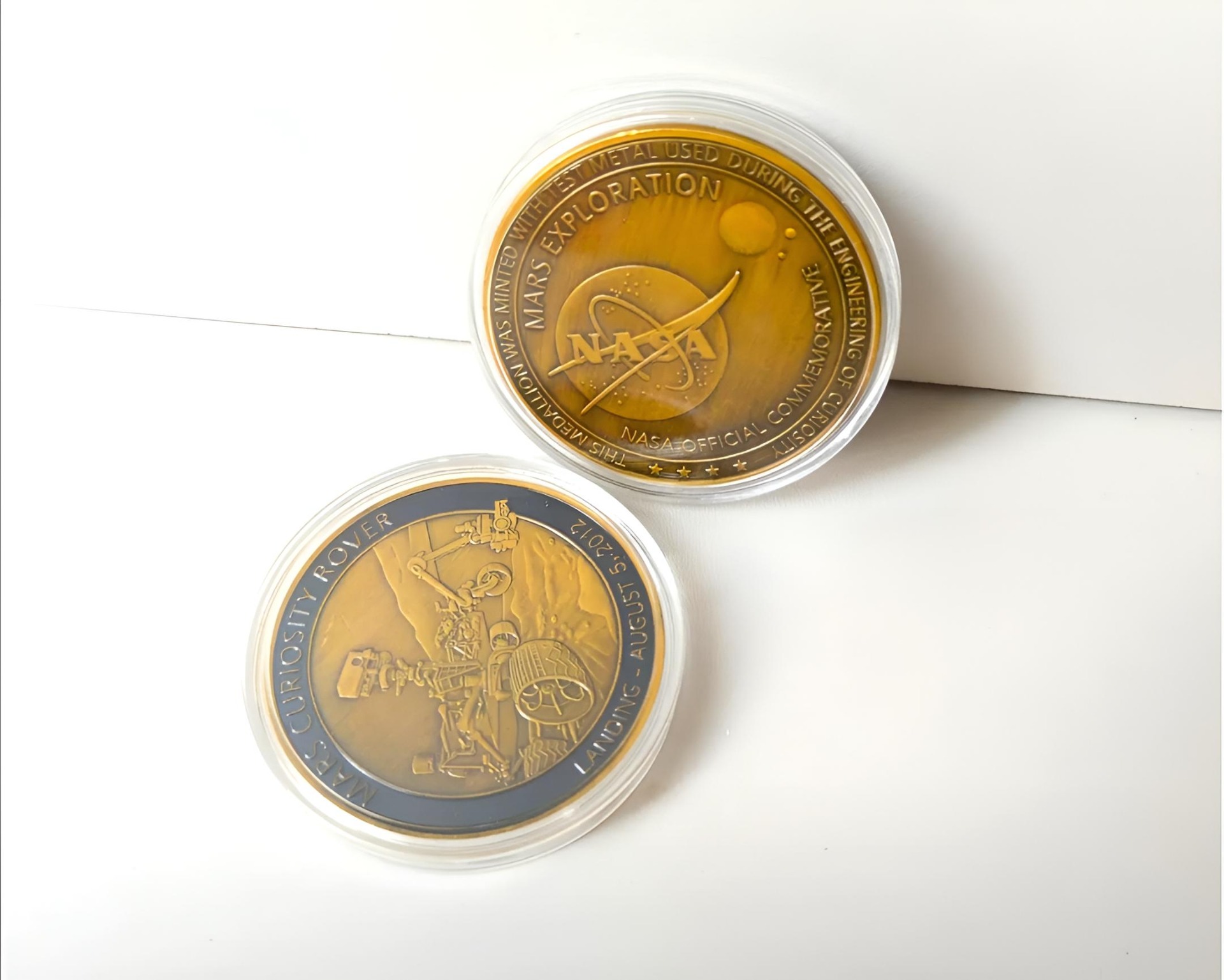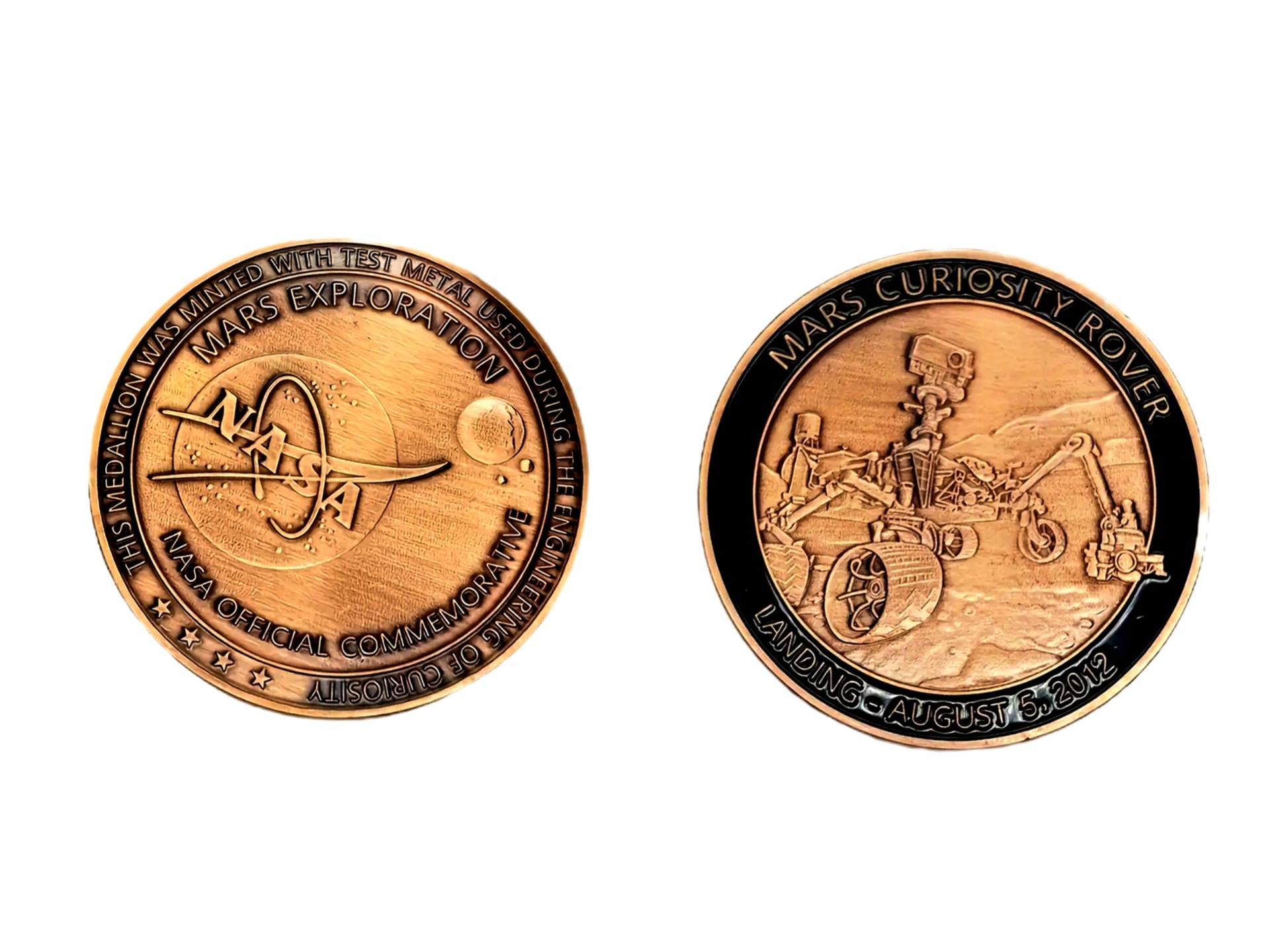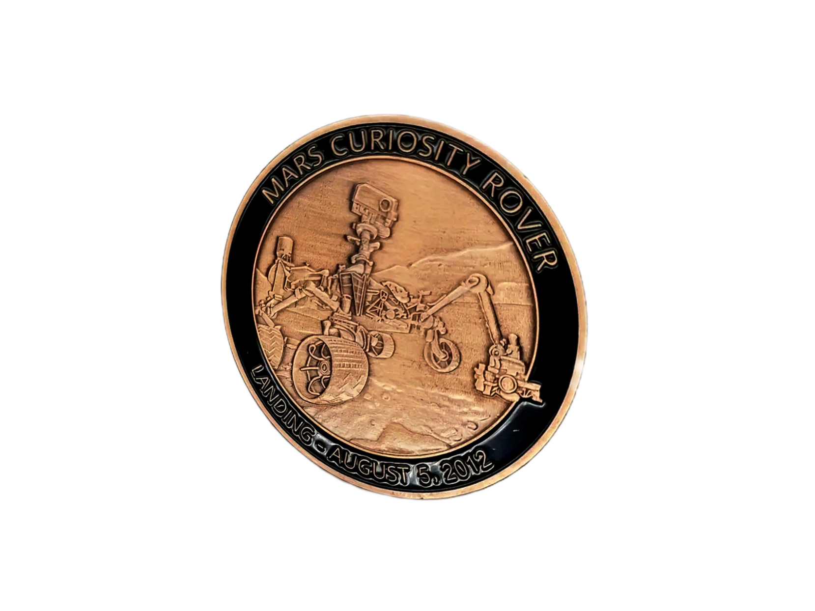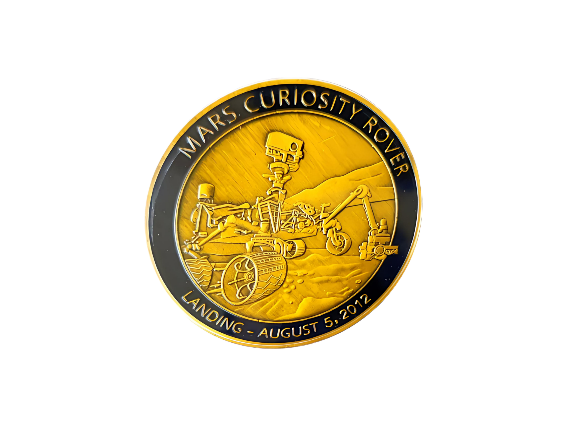 commemorative coin or medallion celebrating the landing of the Mars Curiosity Rover on August 5, 2012.