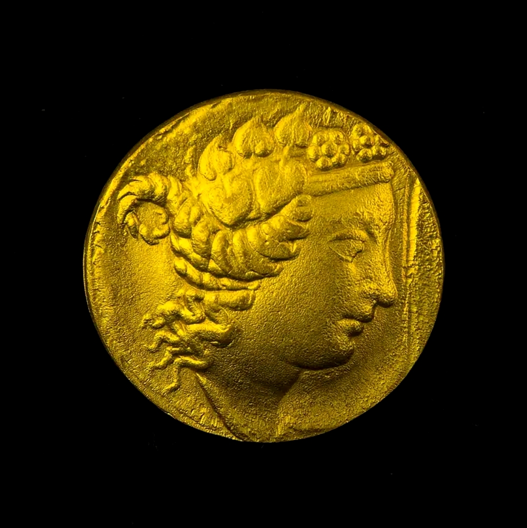 This is an ancient gold stater coin from the Kingdom of Macedonia, minted during the reign of Philip II (359–336 BC). The use of coins like the drachma and tetradrachm was a testament to the commercial power and political prestige of cities like Athens. Ancient Greek tetradrachm coin depicting the goddess Persephone. She is often depicted with a sheaf of wheat, a torch, or a cornucopia.