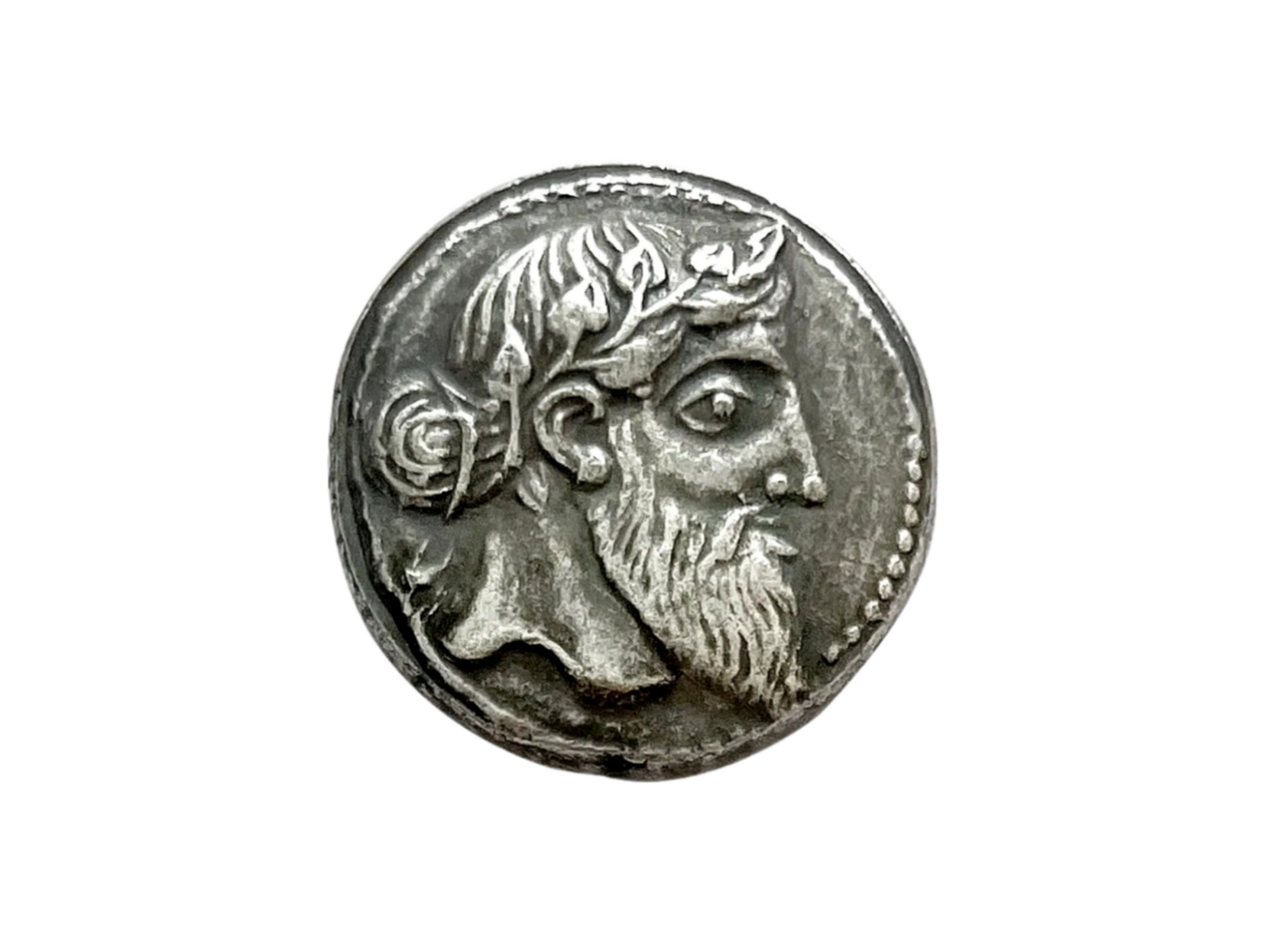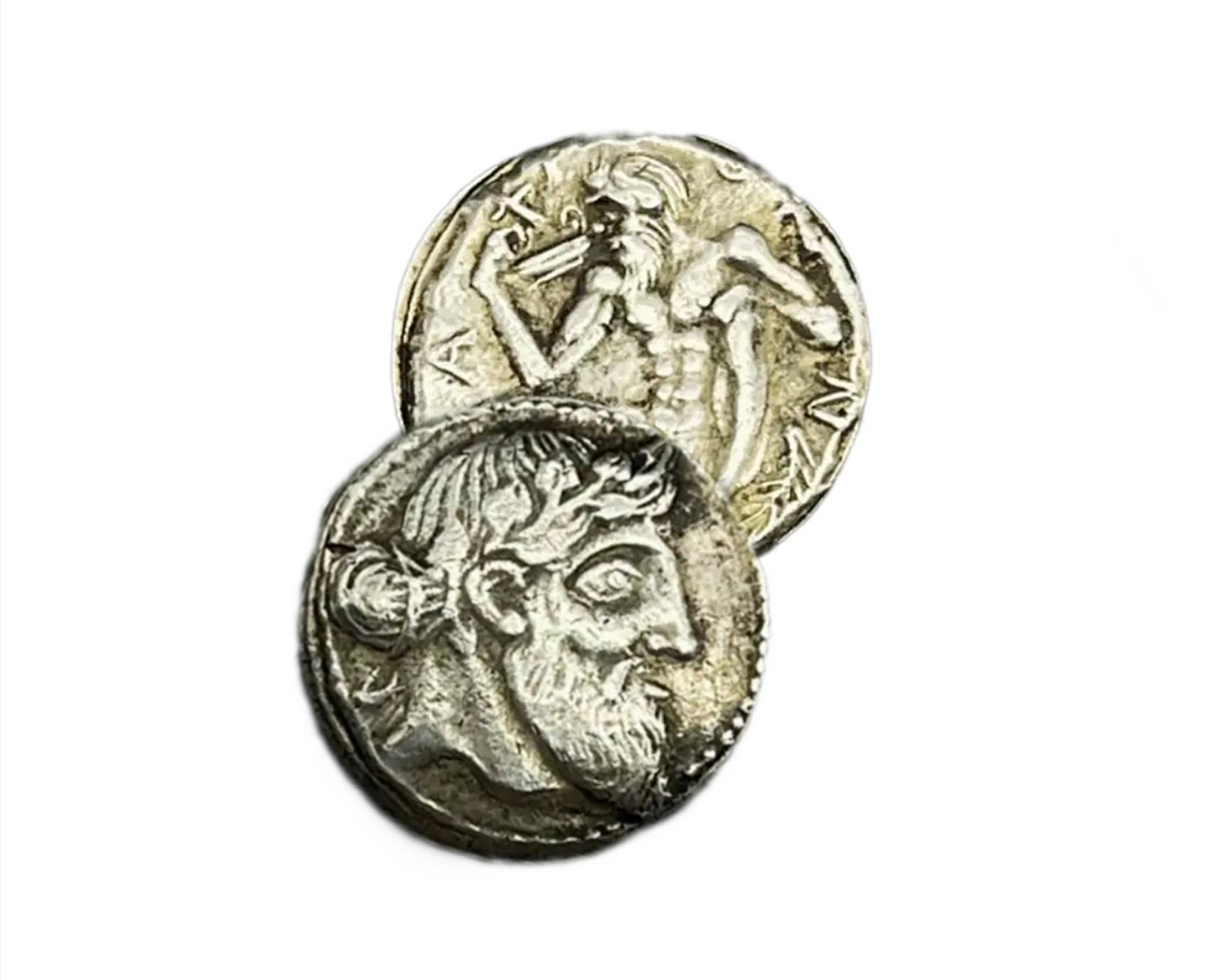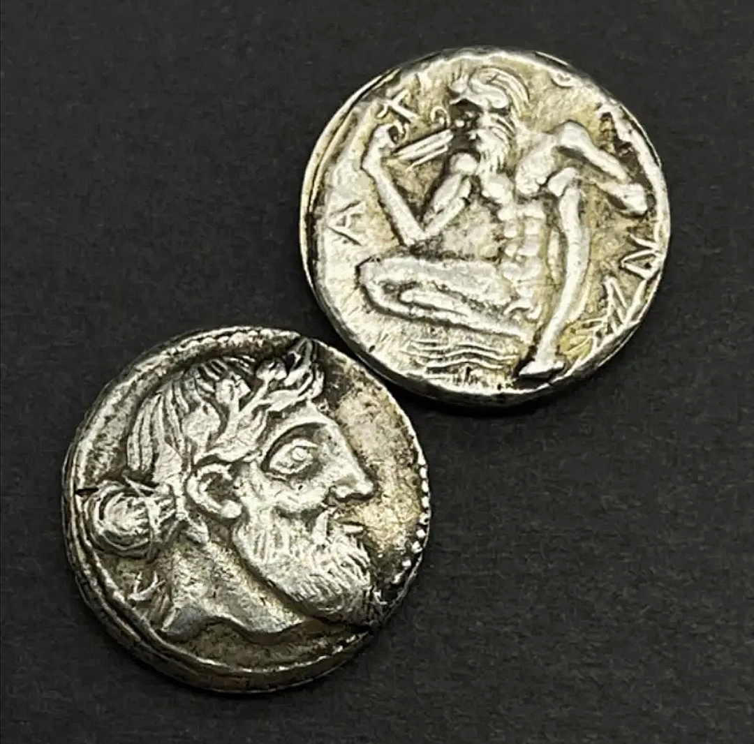 Dionysus the son of Zeus, the king of the gods, and Semele, a mortal princess. His worship was associated with ecstatic dances, wine, and theater.