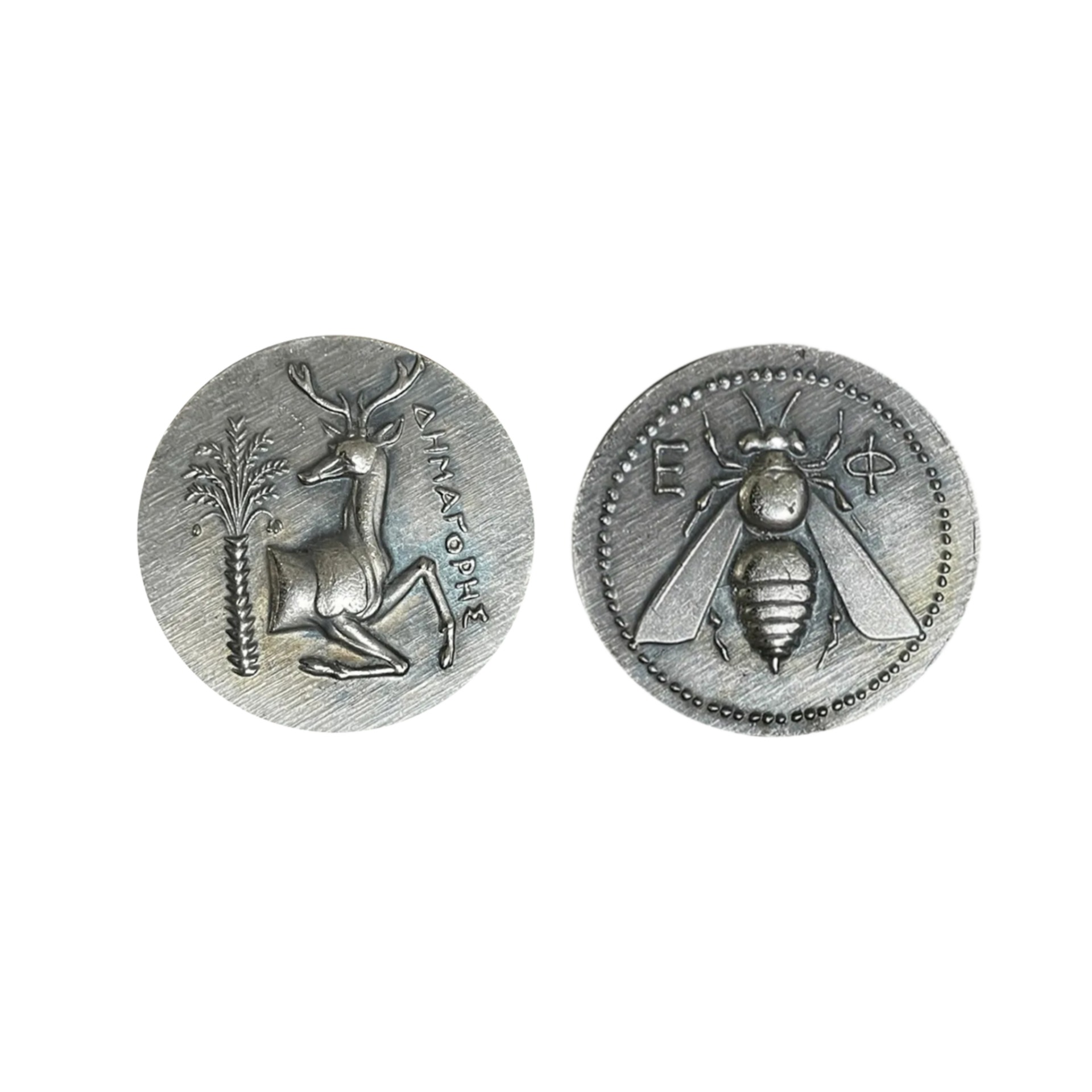 The reverse side of this type of coin typically depicts a stag, another symbol of Artemis.