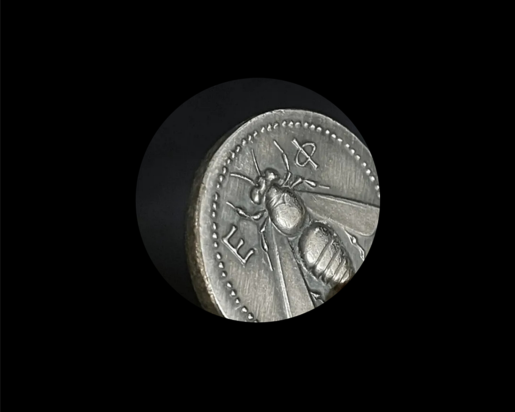 The bee was a symbol of Ephesus and was closely associated with the cult of the Greek goddess Artemis, whose temple was located in the city. The letters ΕΦ on the coin are an abbreviation for Ephesos.