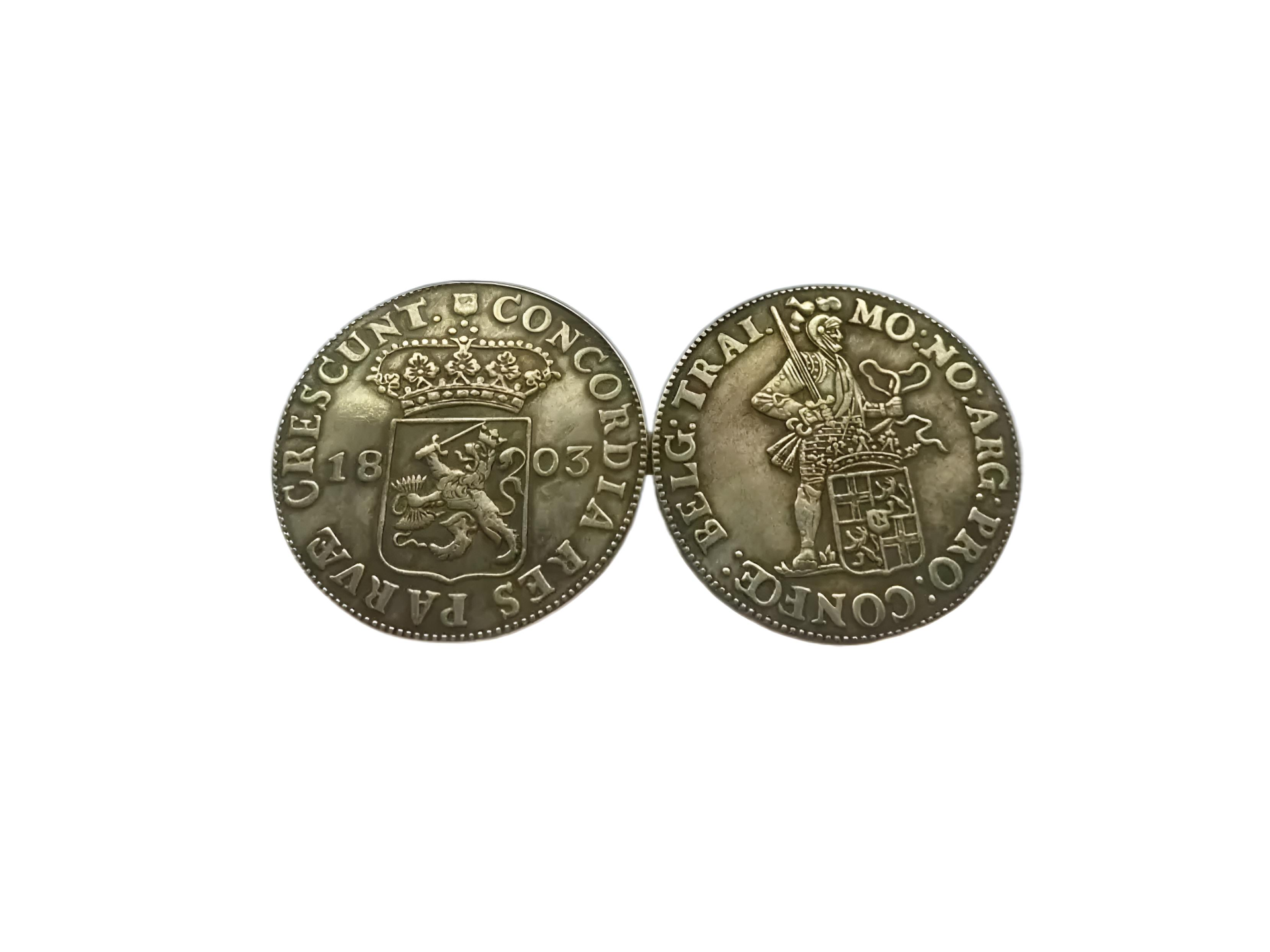 Dutch silver ducat dates back to the medieval period, initially minted by various provinces for trade and becoming a globally accepted trade coin. Historically, a knight on the obverse and the provincial or national crest on the reverse were common features.